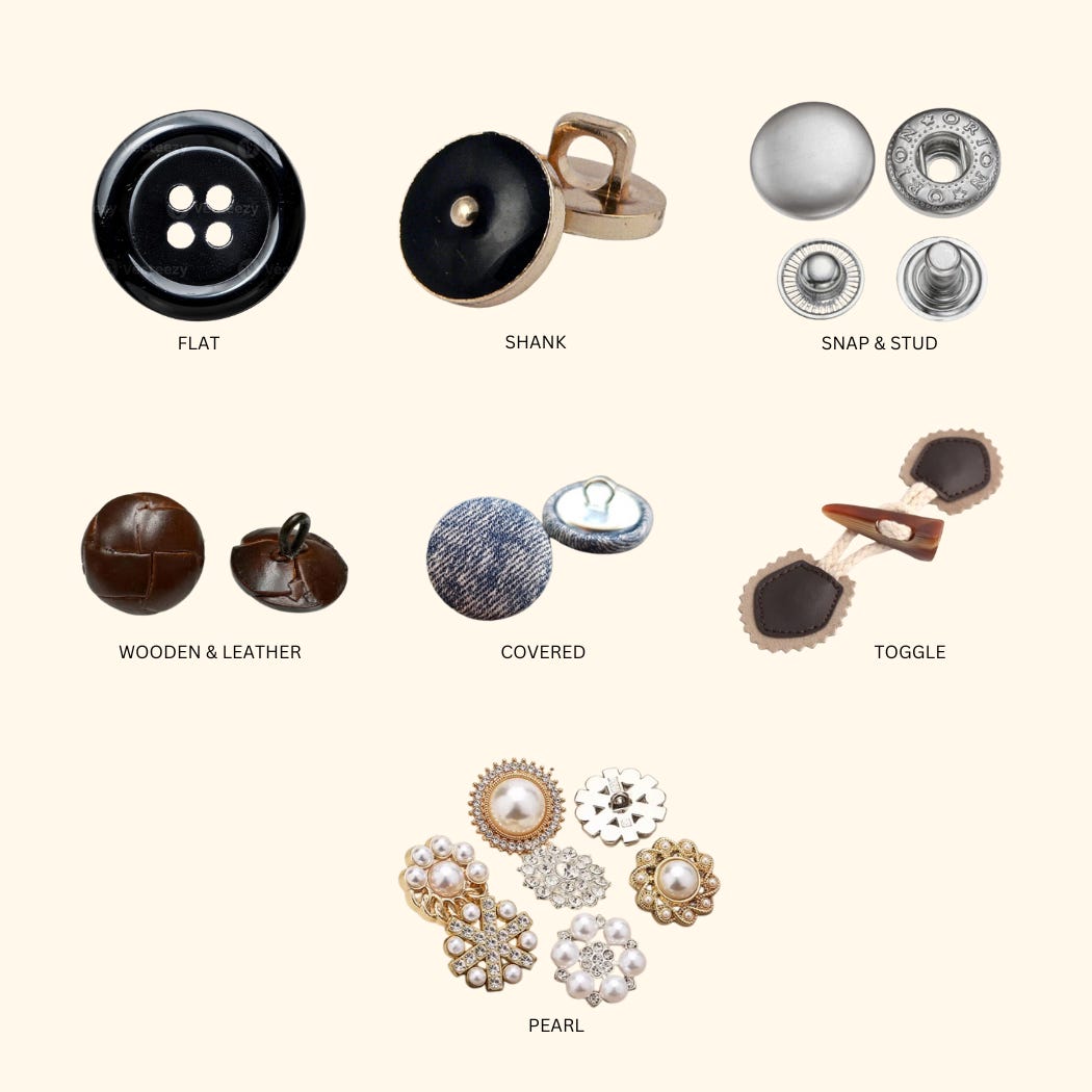 Today, buttons come in various forms, each adding a distinct touch to garments. Here are seven different styles: